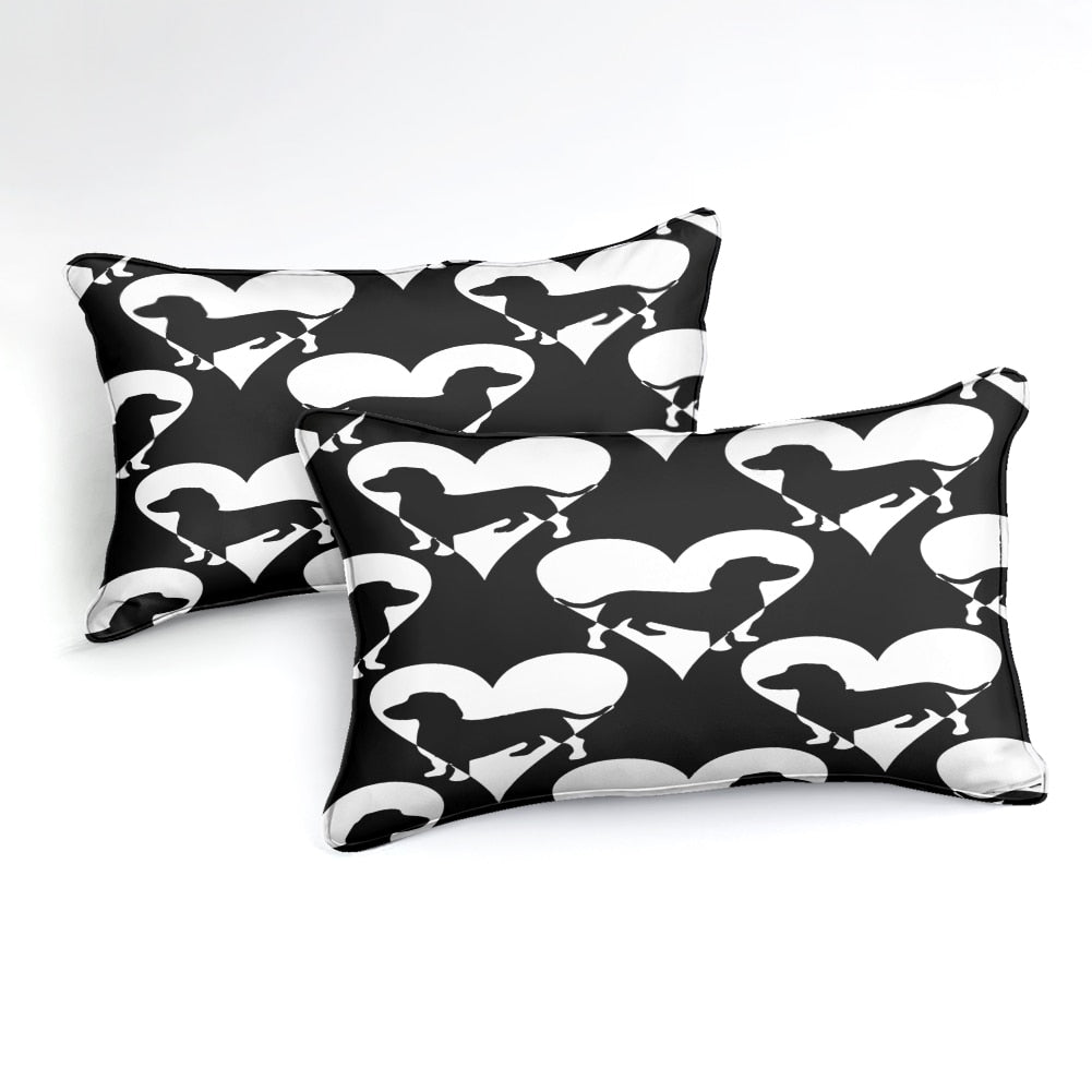 2/3-Piece Black & White Dachshund Love Duvet Cover Set
