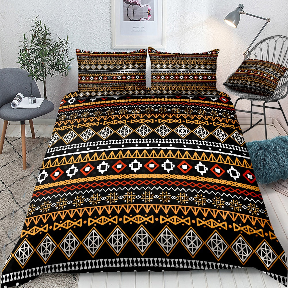 2/3-Piece Black & Orange Ethnic Stripe Duvet Cover Set