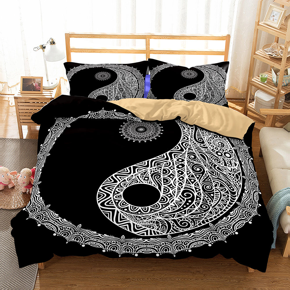 2/3-Piece Black & White Bohemian Yin-Yang Duvet Set