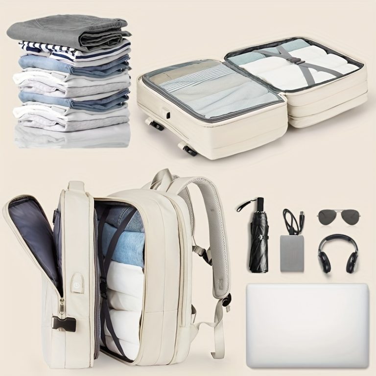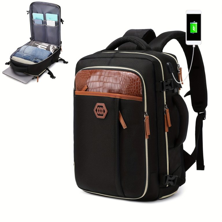 Carry-On Travel Backpack With Shoes Compartment, Expandable Waterproof Luggage Daypack, Portable Laptop Schoolbag