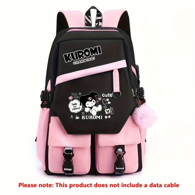 Kuromi Pattern Backpack, Kawaii Stylish School Bag, Women’s Colorblock Rucksack