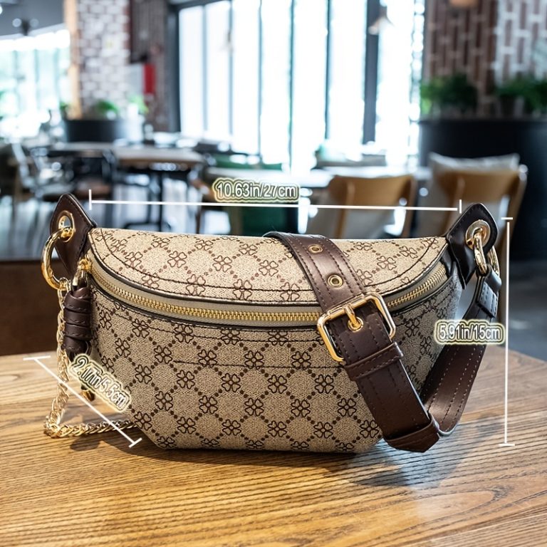 Geo Pattern Fanny Pack, Elegant Zipper Front Sling Bag Versatile Chest Bag