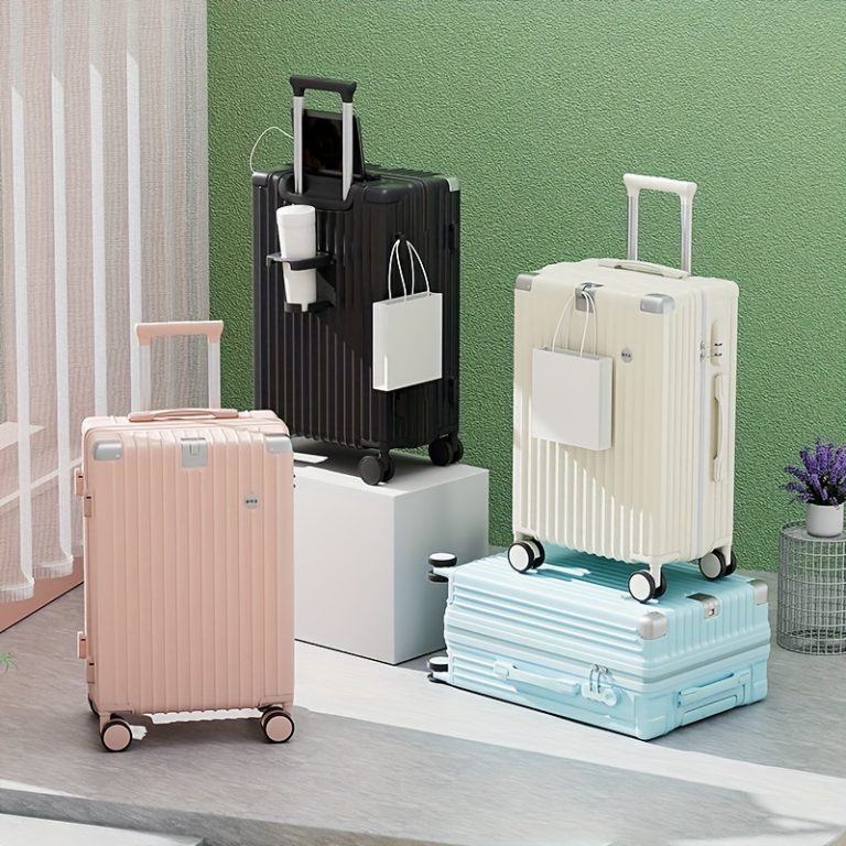 Minimalist Solid Color Hardside Suitcase, Casual Business, Thickened Carry-On With Wheels Luggage Case With Cup Holder & Hook