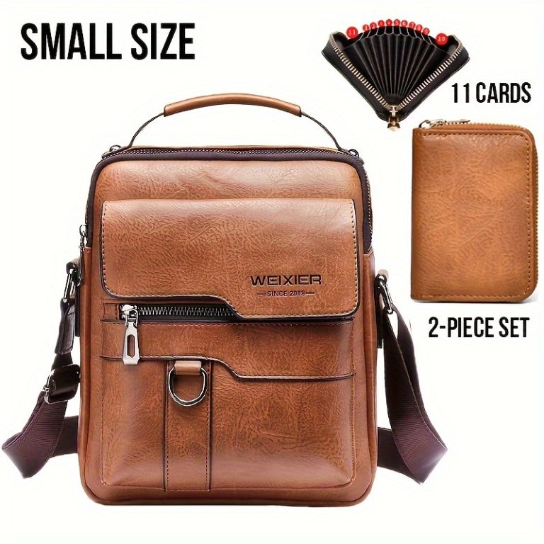 WEIXIER 1/2pcs Crossbody Bag, Men’s Shoulder Bag, Retro Faux Leather Vertical Business Casual Satchel Bag, Men’s Gift For Father/Anniversary