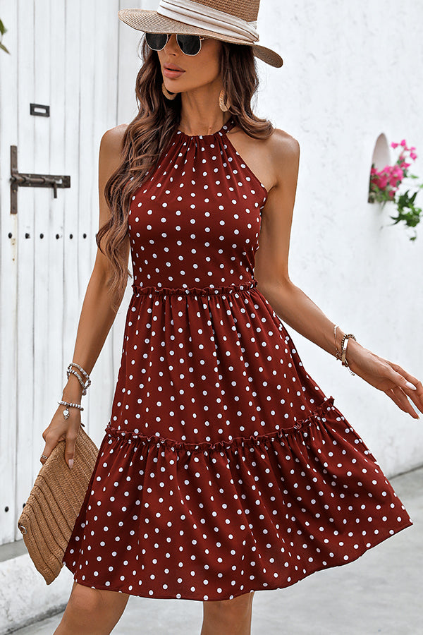 Dots Print Halter Neck Casual Mini Dress