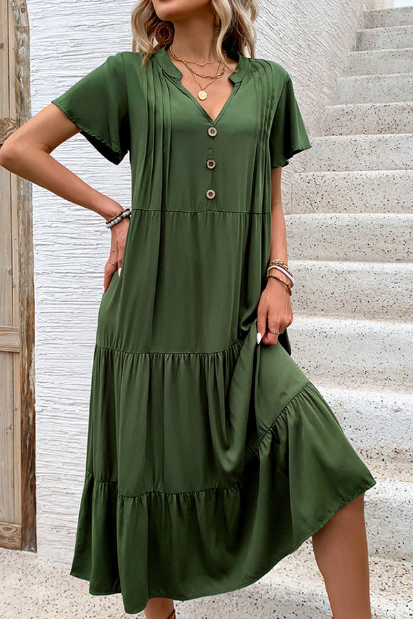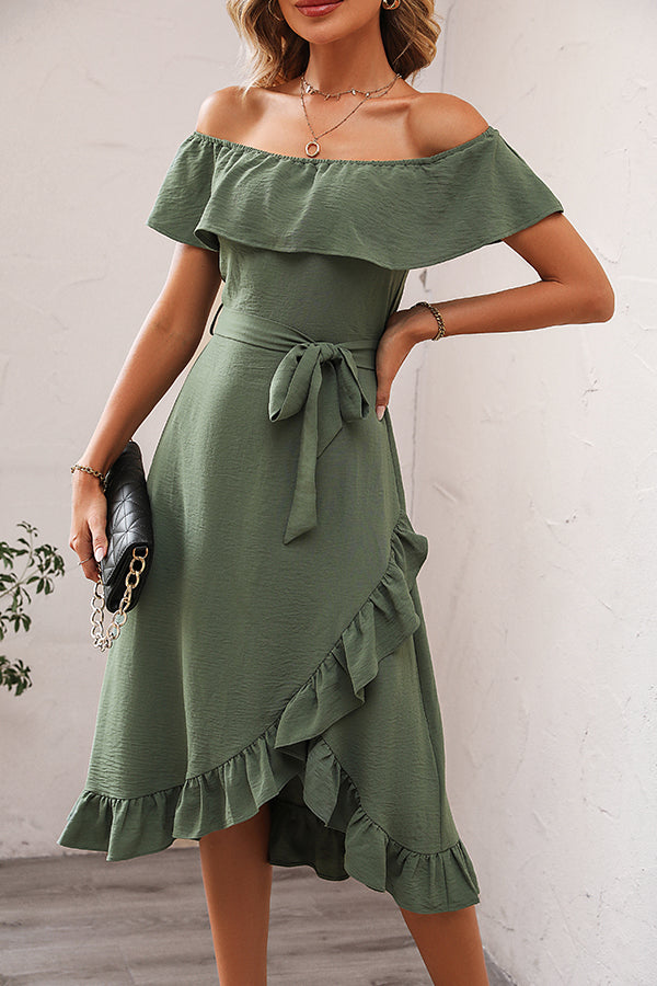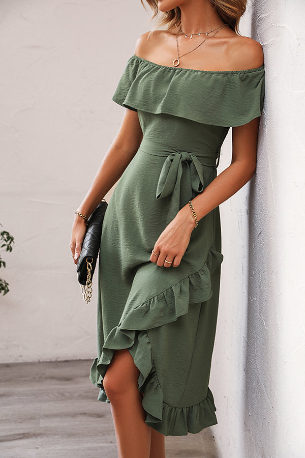 Ruffle Design Solid Round Neck Casual Dress