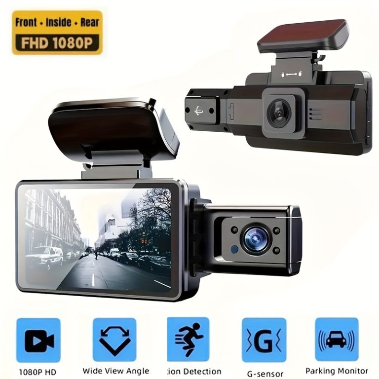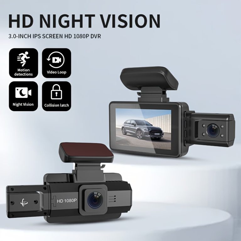 Camera HD 1080P Dash Camera Front And Rear Inside Dash IR Night Vision Loop Recording G-Sensor Car DVR Camera With 3-Inch IPS Screen 2 Cameras Parking Monito