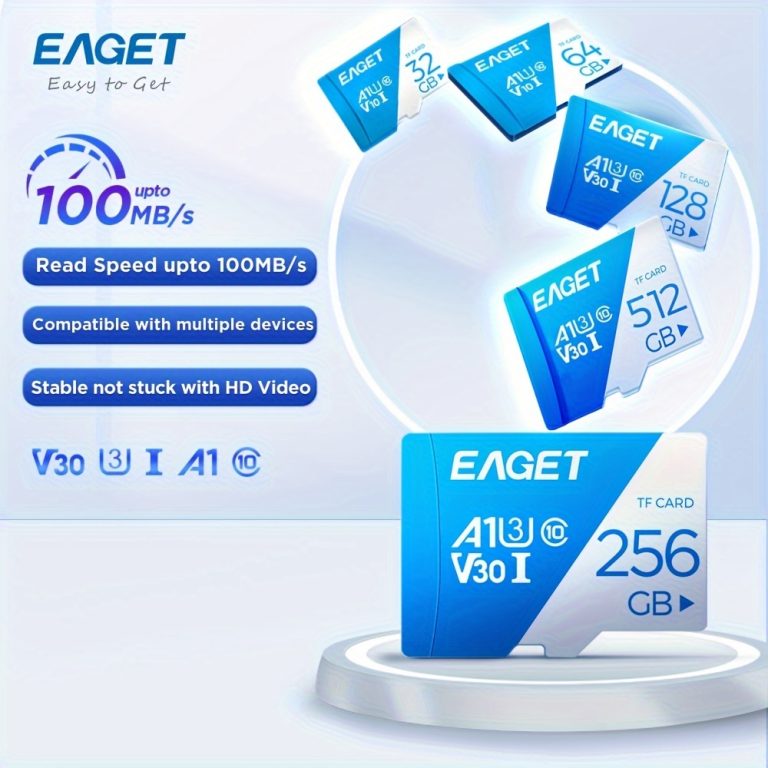 EAGET Card 512GB 256GB 128GB Memory Card, Blue & White Micro SDXC SD Card 64GB 32GB Class 10 High Speed Flash Memory Card Storage Memory TF SD Card Gift For Birthday/Easter/Boy/Girlfriend