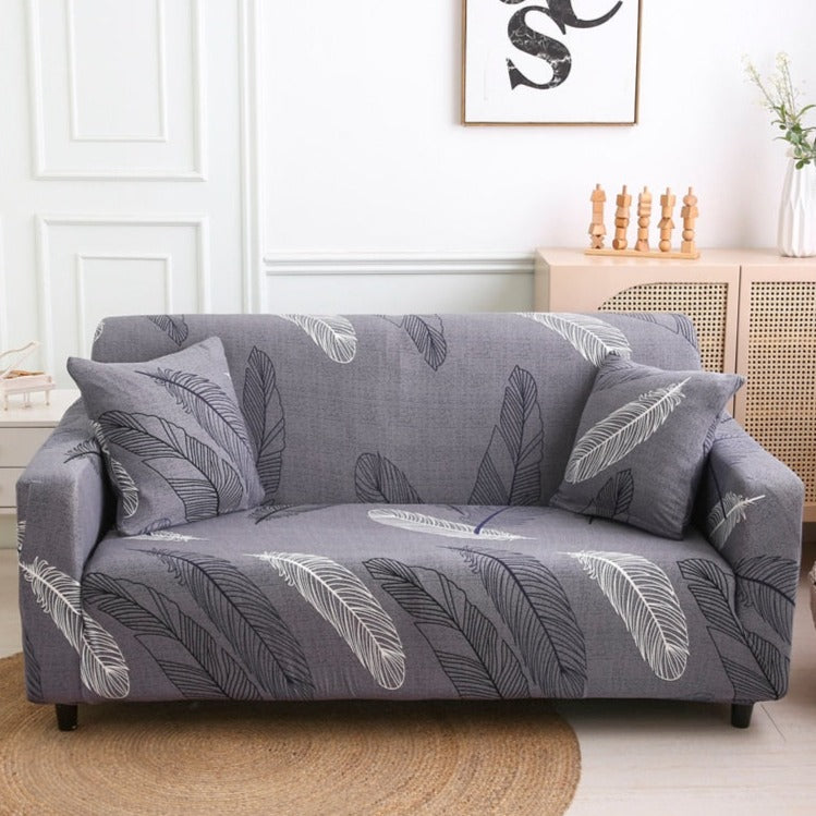 Gray Feather Outline Pattern Sofa Couch Cover