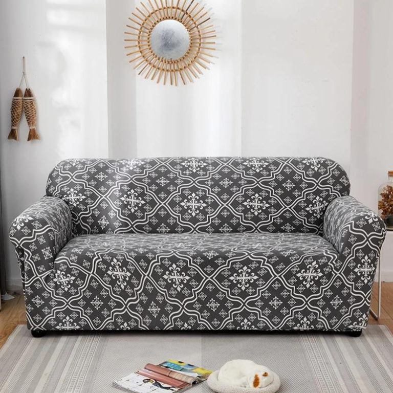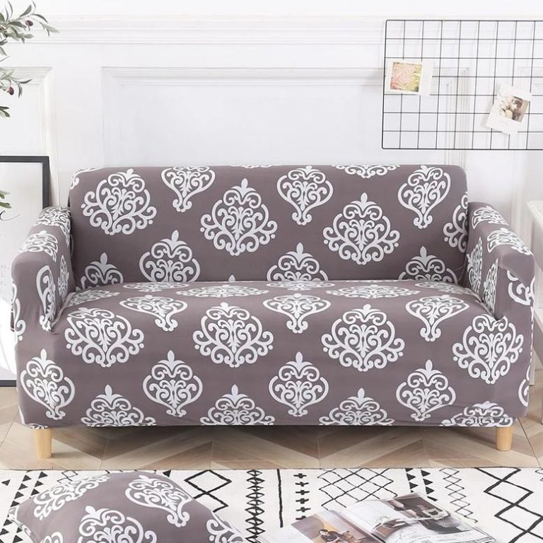 Gray & White Floral Medallion Pattern Sofa Couch Cover