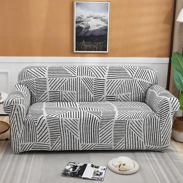 Gray / Black Geometric Line Pattern Sofa Couch Cover
