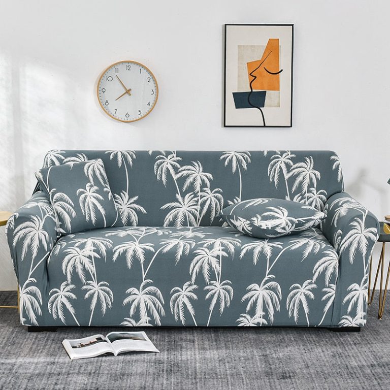 Gray / White Tropical Palm Tree Pattern Sofa Couch Cover