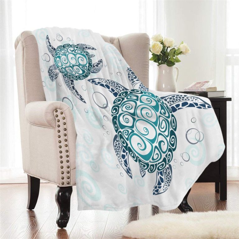 White Native Pattern Fleece Sea Turtle Throw Blanket