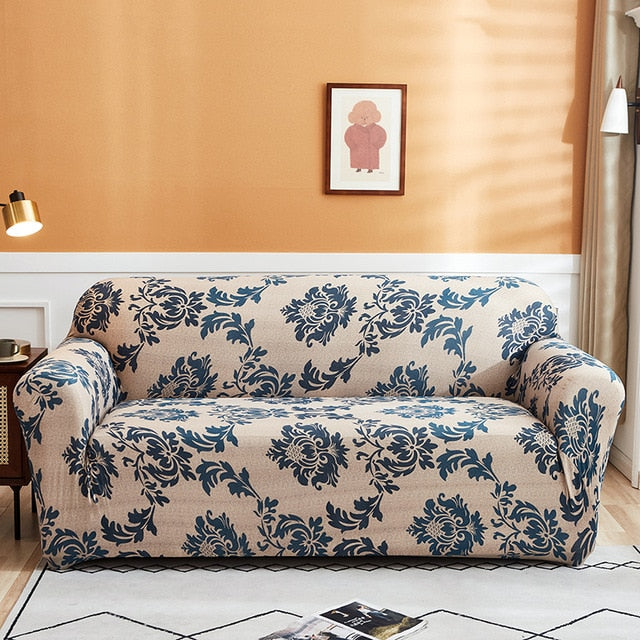 Beige / Blue Vintage Floral Pattern Sofa Couch Cover