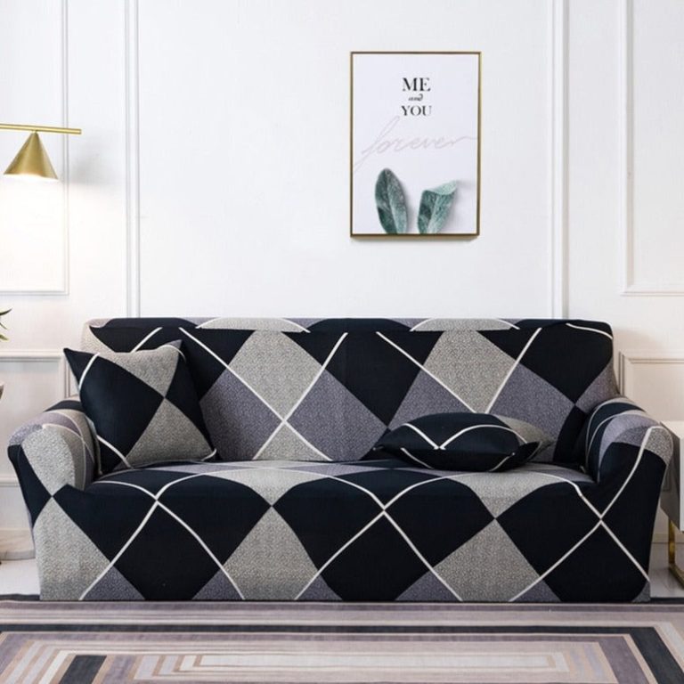 Black / Gray Plaid Tartan Pattern Sofa Couch Cover