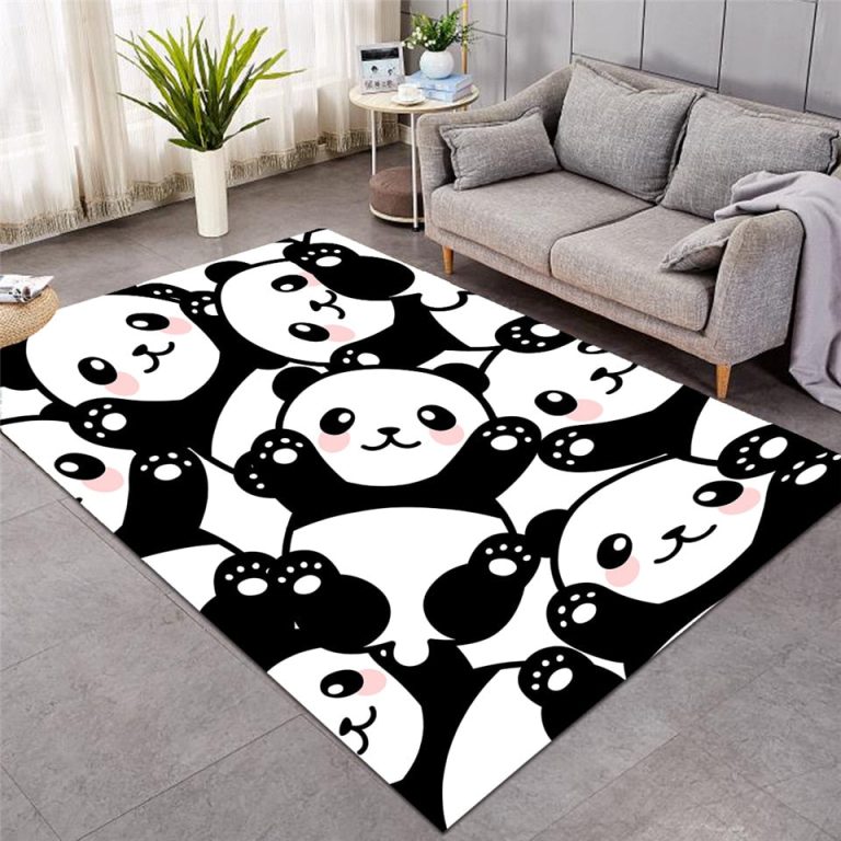 Black & White Cartoon Panda Area Rug Floor Mat