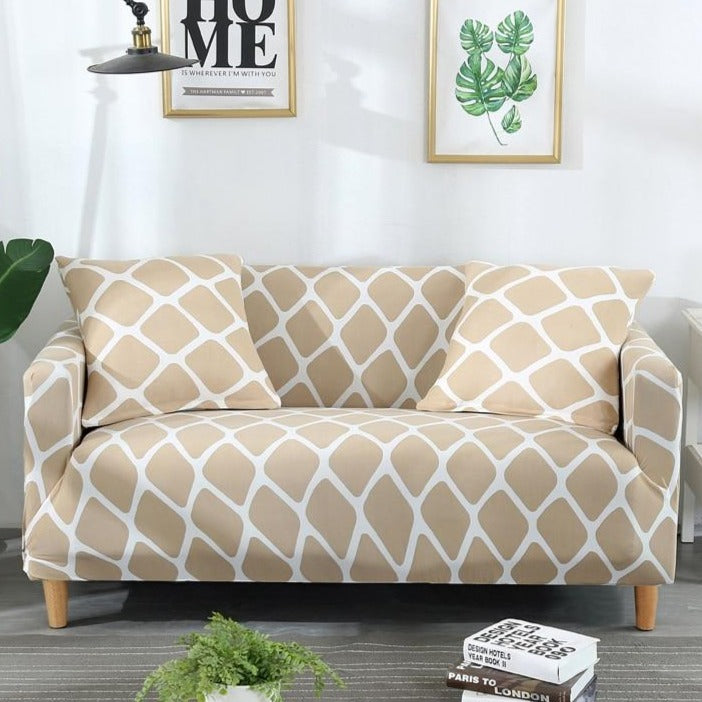Beige Geometric Honeycomb Pattern Sofa Couch Cover