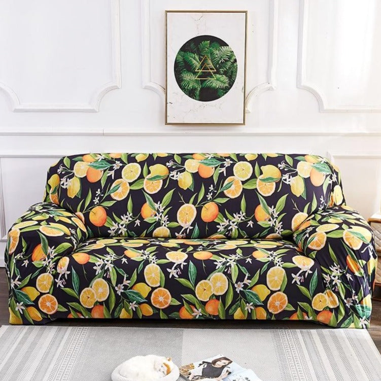 Black / Yellow Citrus Fruit Pattern Sofa Couch Cover