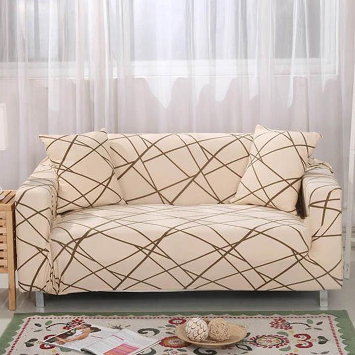 Beige Contemporary Line Pattern Sofa Couch Cover
