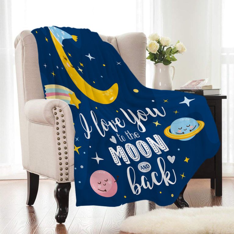 Blue Cartoon Space / Moon Print Fleece Throw Blanket