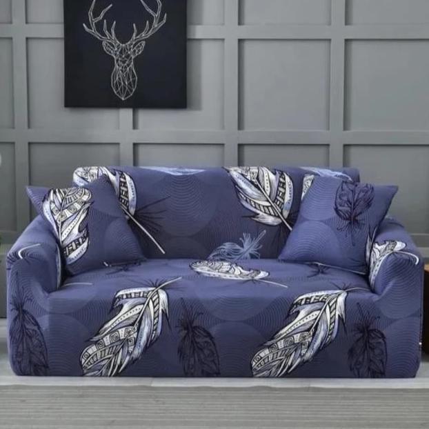 Blue Gray Abstract Floral Pattern Sofa Couch Cover