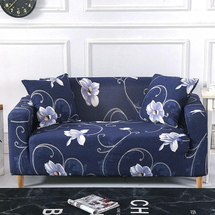 Blue Floral Iris Swirl Pattern Sofa Couch Cover