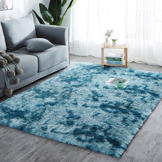 Blue 2-Tone Faux Fur Plush Shag Area Rug Floor Mat