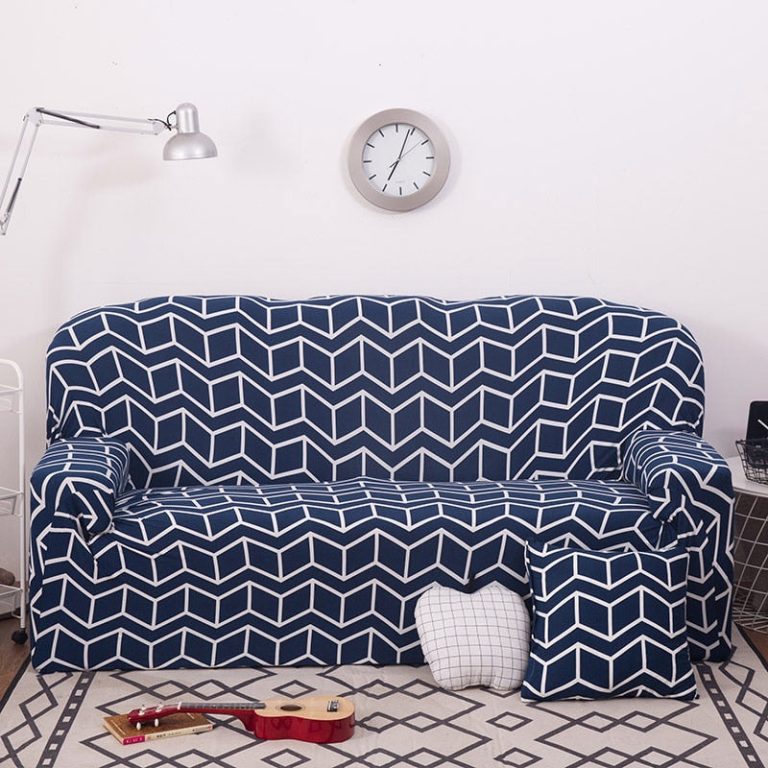 Blue Geometric Ladder Pattern Sofa Couch Cover
