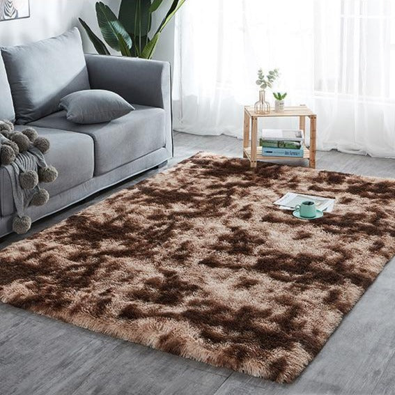 Brown 2-Tone Faux Fur Plush Shag Area Rug Floor Mat
