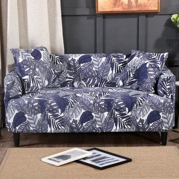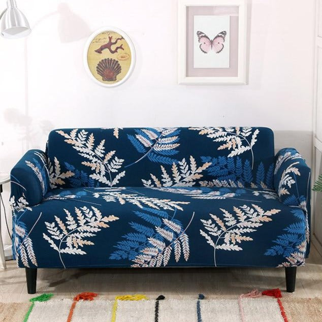 Blue Tropical Fern Leaf Pattern Sofa Couch Cover