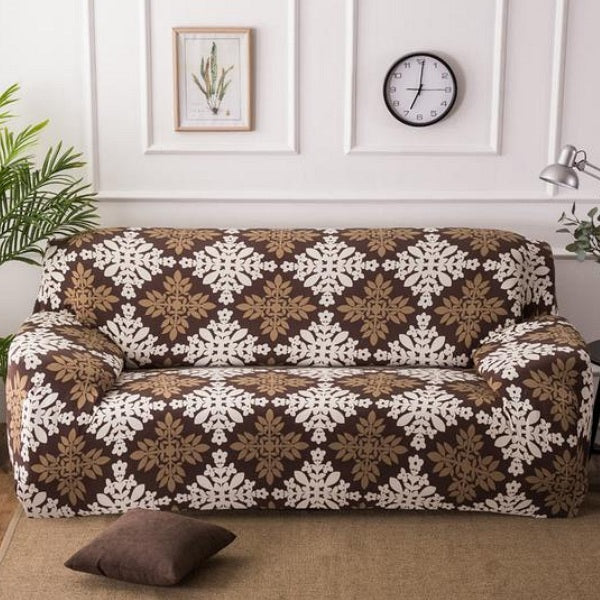 Brown Floral Medallion Pattern Sofa Couch Cover