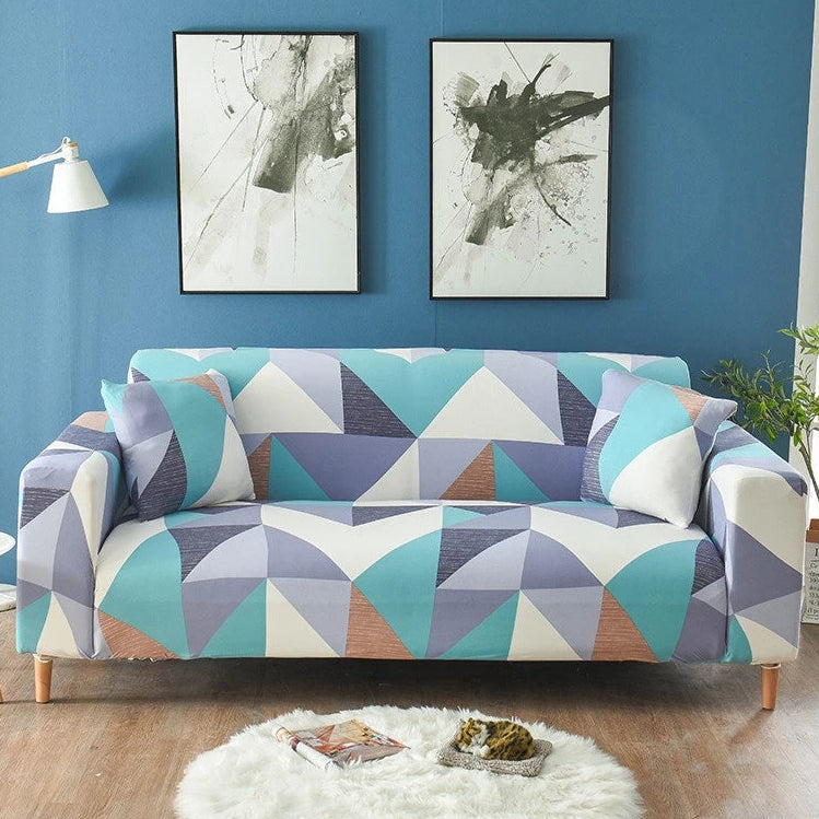 Blue Pastel Geometric Triangle Sofa Couch Cover