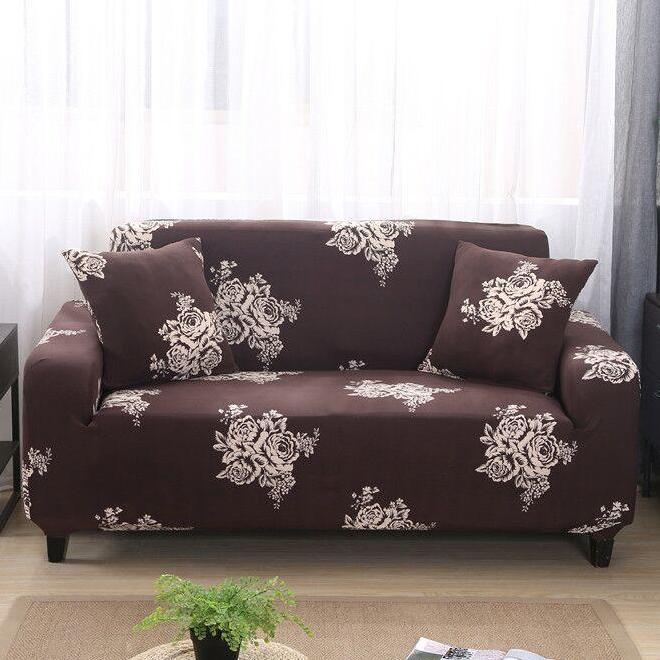 Brown Floral Rose Pattern Sofa Couch Cover