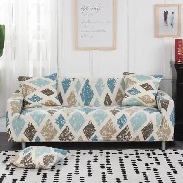 Brown / Blue Diamond Pattern Sofa Couch Cover