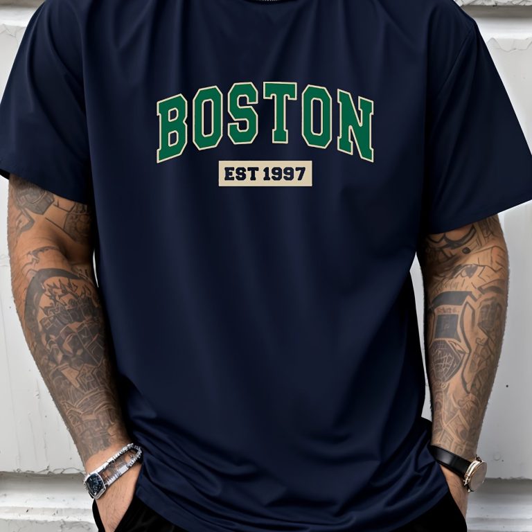 Letter Print Men’s Creative Top, Casual Short Sleeve Crew Neck T-shirt, Men’s Clothing For Summer Outdoor