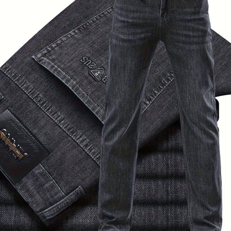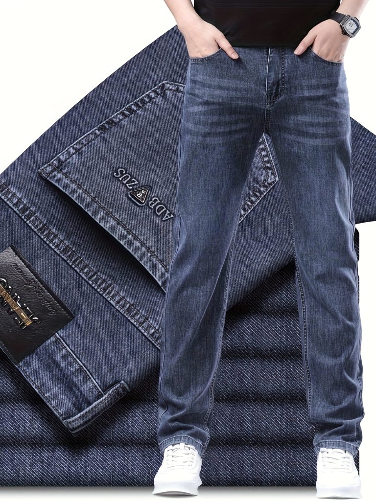 Classic Design Cotton Blend Jeans, Men’s Casual Business Straight Leg Denim Pants, Men’s Straight Leg Business Trousers