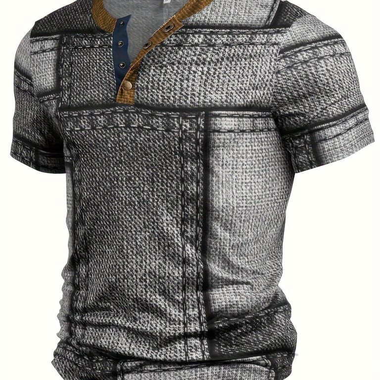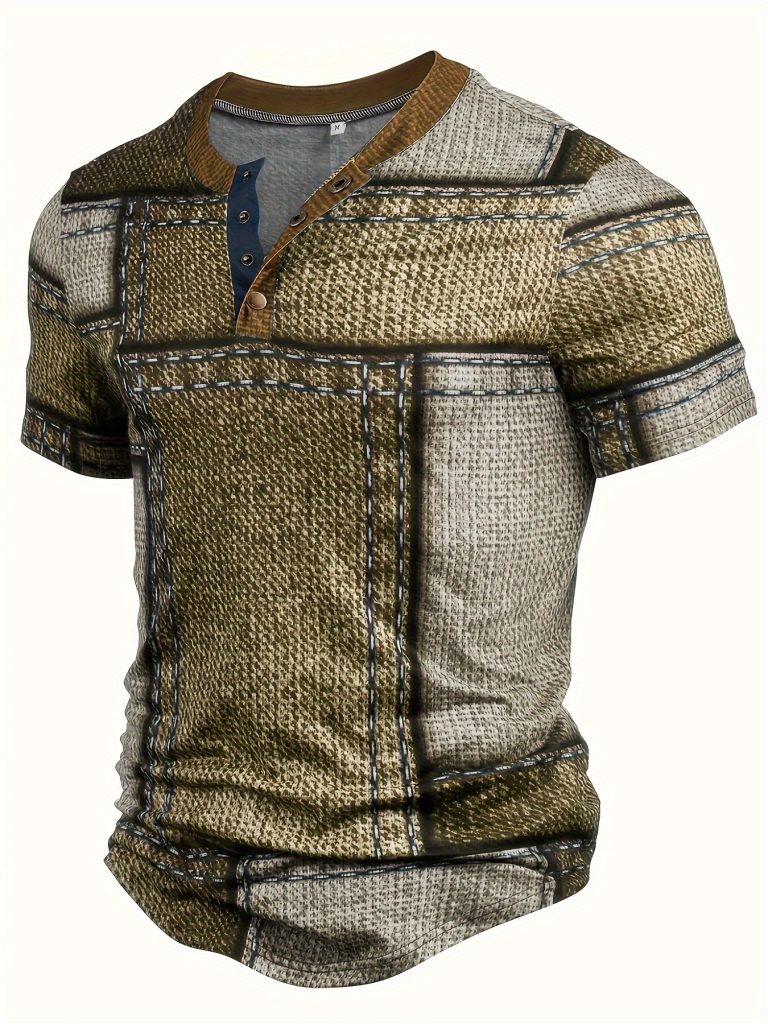 Geometric Graphic Print Men’s Creative Top, Casual Short Sleeve Crew Neck T-shirt, Men’s Clothing For Summer Outdoor