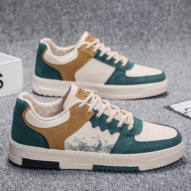 Men’s Trendy Street Style Low Top Skateboard Shoes, Comfy Non Slip Lace Up Durable Sneakers For Men’s Outdoor Activities