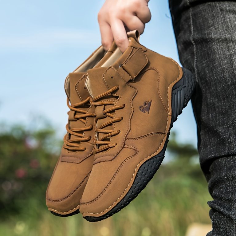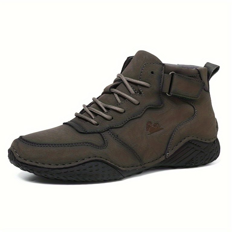 Men’s Trendy Solid High Top Boots, Comfy Non Slip Casual Durable Lace Up Shoes For Men’s Outdoor Activities