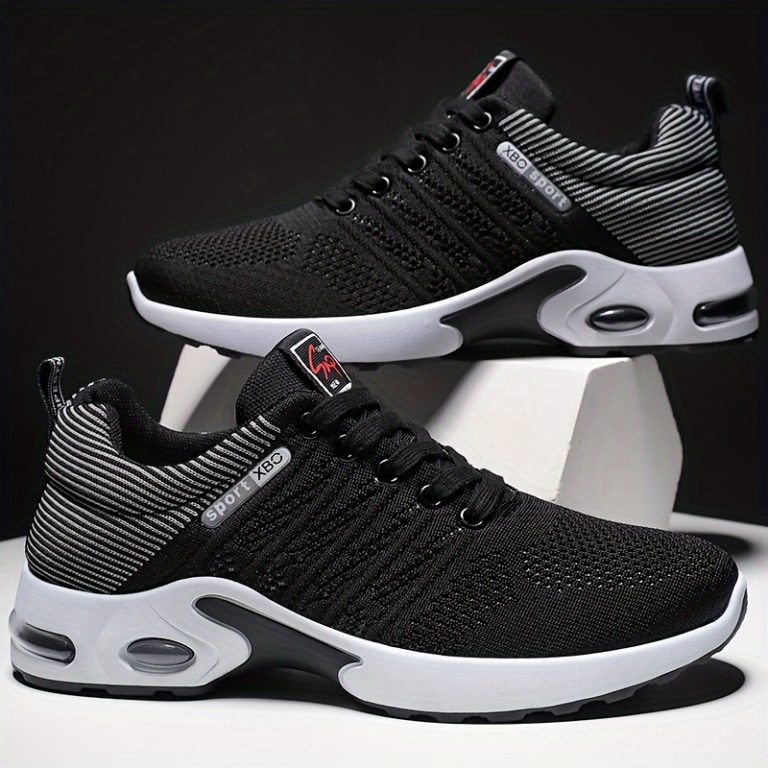 Men’s Trendy Woven Knit Breathable Running Shoes With Air Cushion, Comfy Non Slip Durable Sneakers For Men’s Outdoor Activities