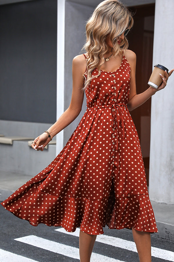 Fashion Dots Print Sleeveless Tie Waist Dress
