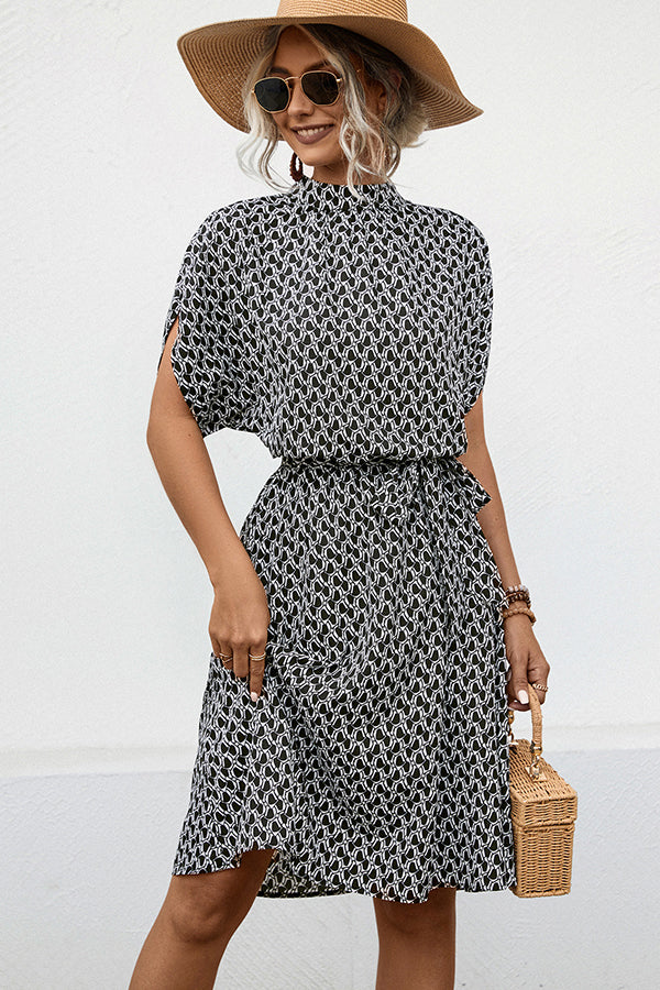 Fashion Printed Ruffle Sleeve Knot Back Mini Dress