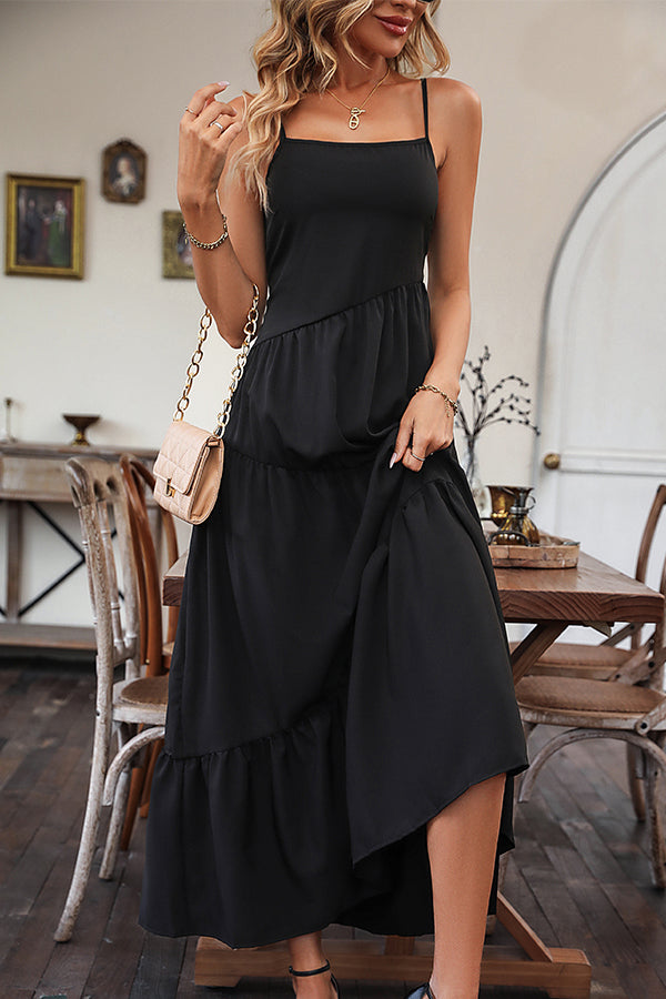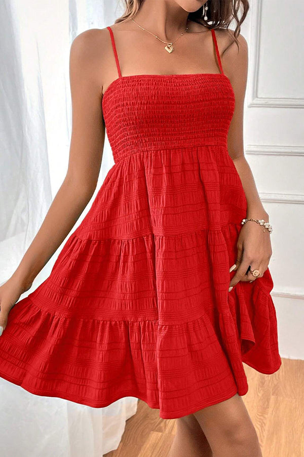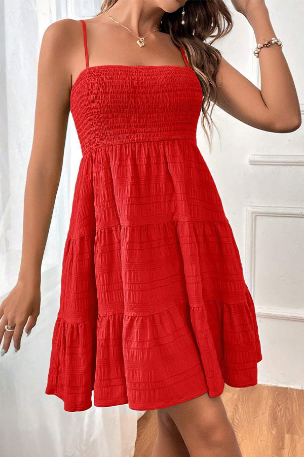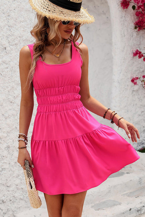 Solid Color Square Neck Ruffle Hem Mini Dress