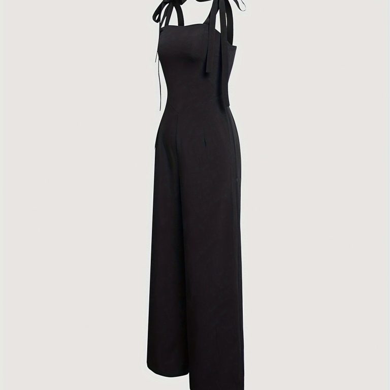 Knot Strap Wide Leg Jumpsuit, Casual Sleeveless Jumpsuit For Spring & Summer, Women’s Clothing