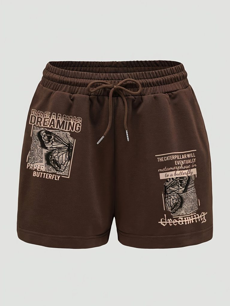 Letter Print Drawstring Shorts, Casual Elastic Waist Shorts For Spring & Summer, Women’s Clothing