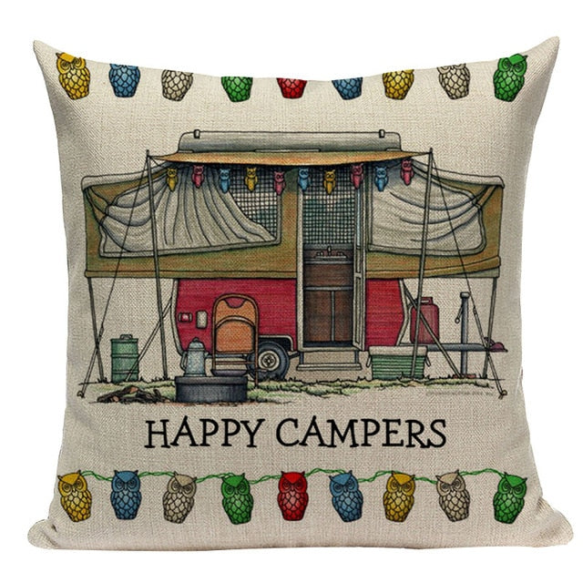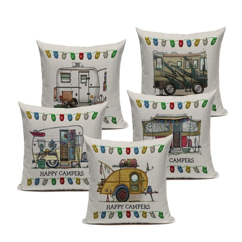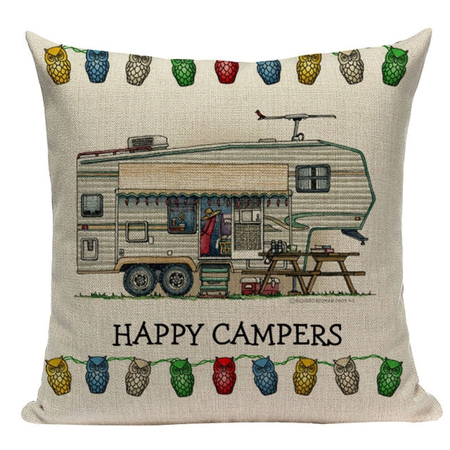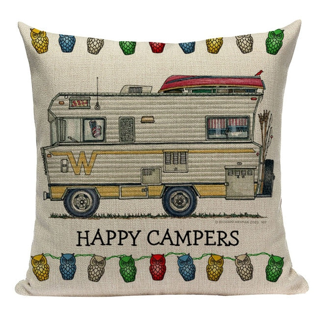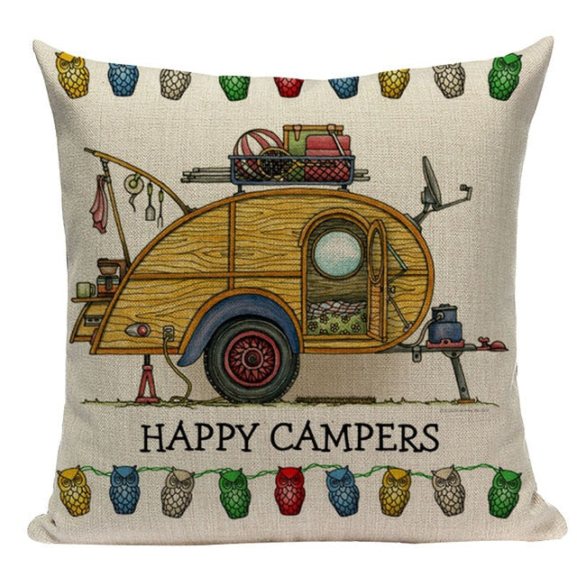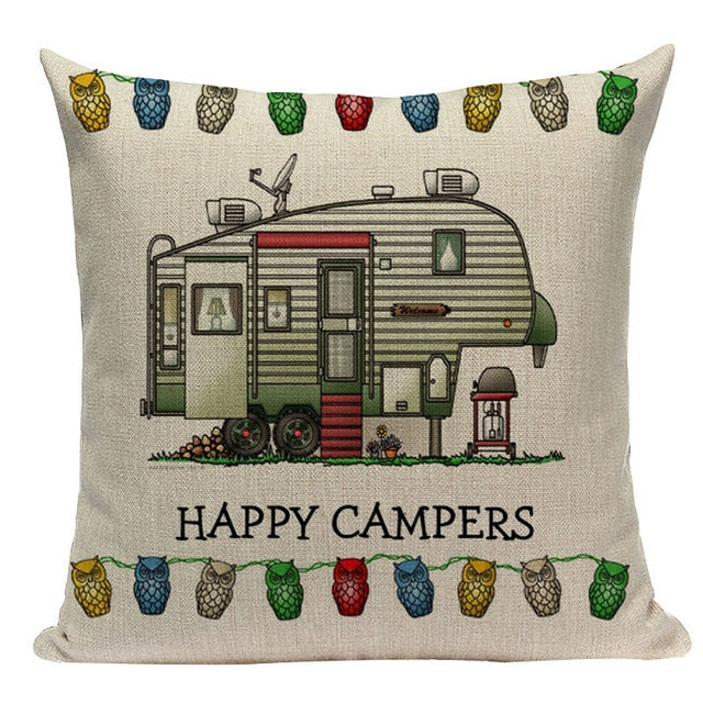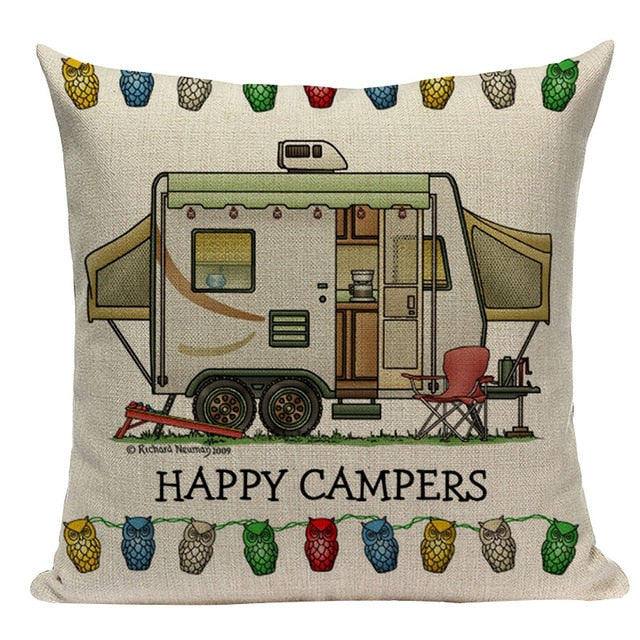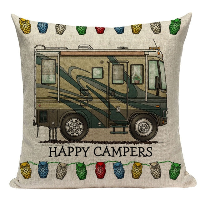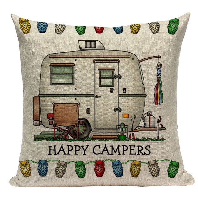 18″ Happy Campers RV Print Throw Pillow Cover