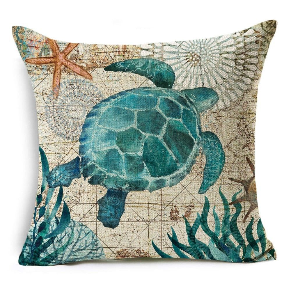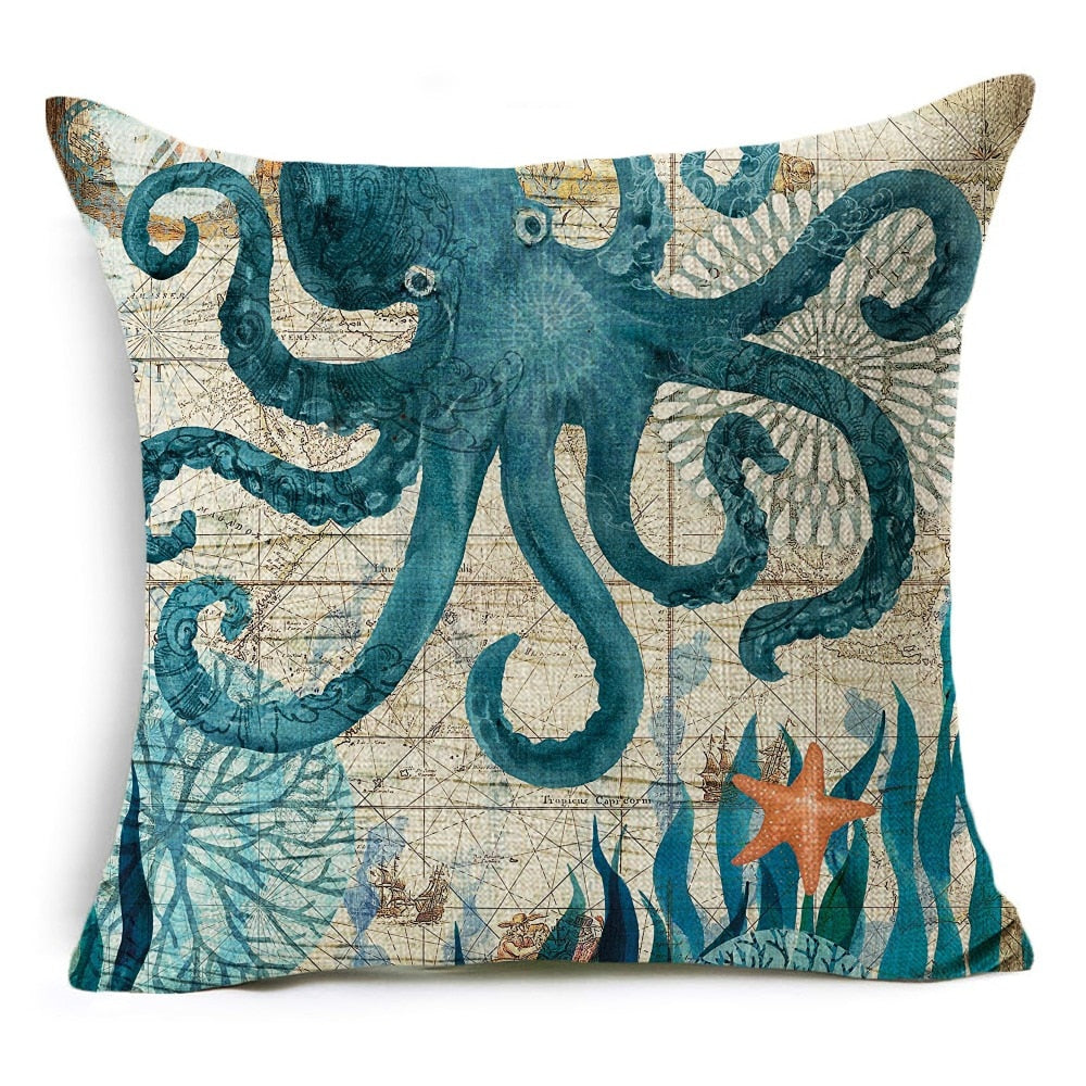 18″ Mediterranean Sea Life Throw Pillow Cover