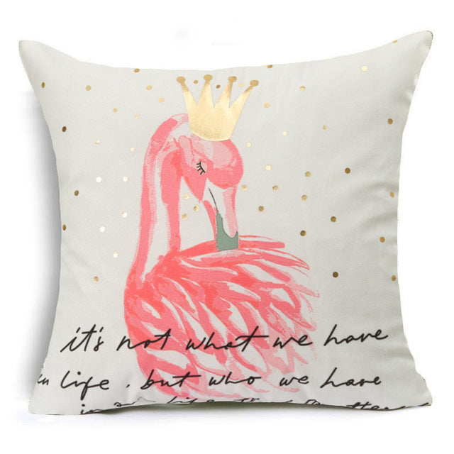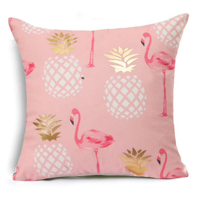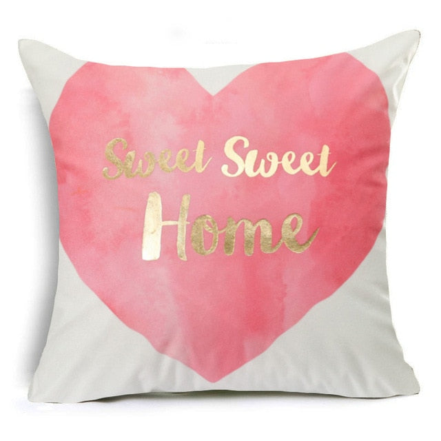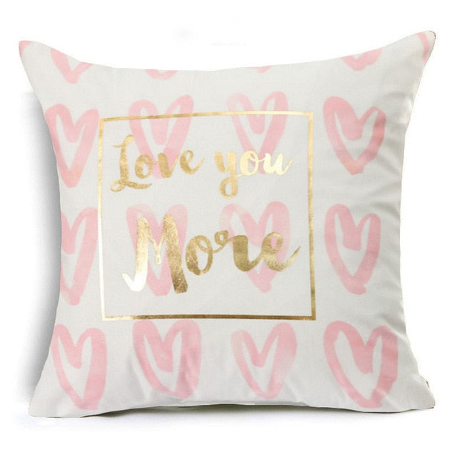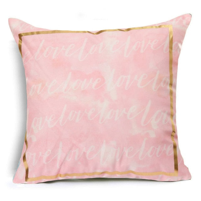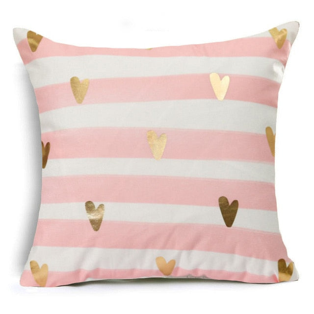 18″ Pink & Gold Printed Microfiber Throw Pillow Cover