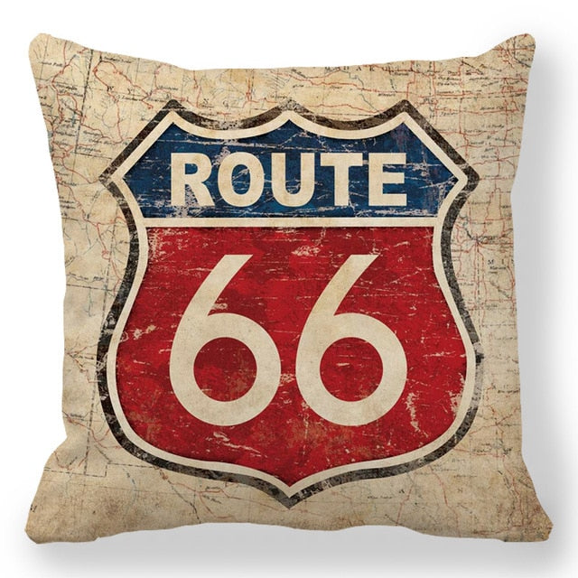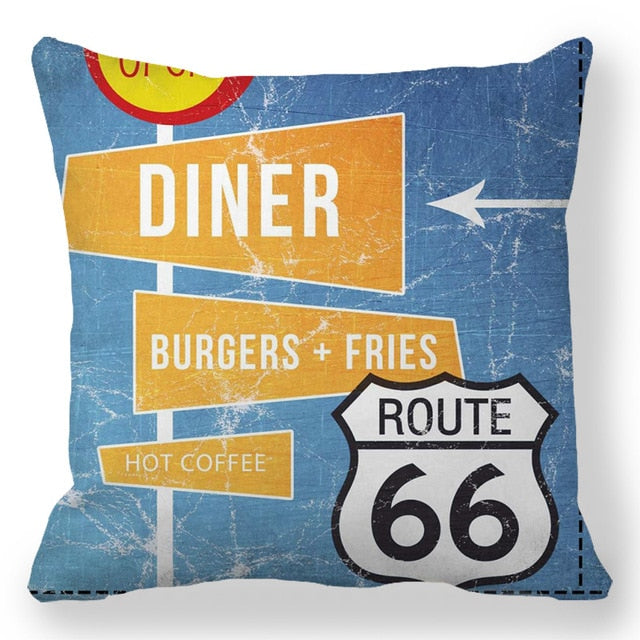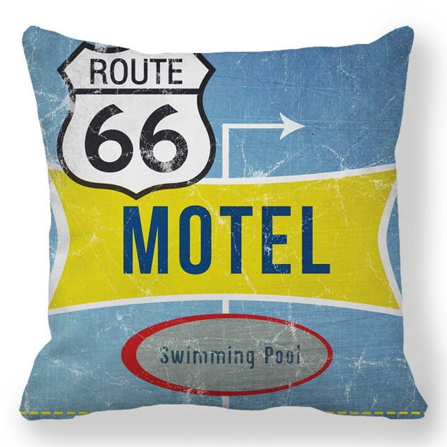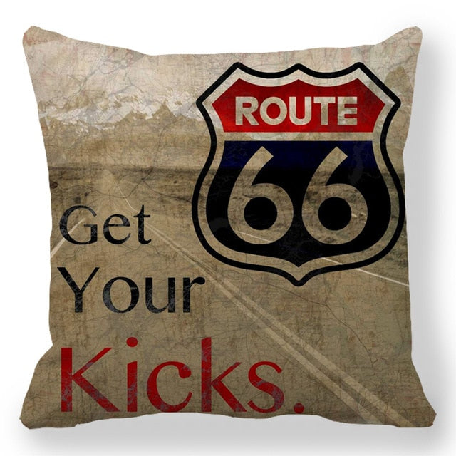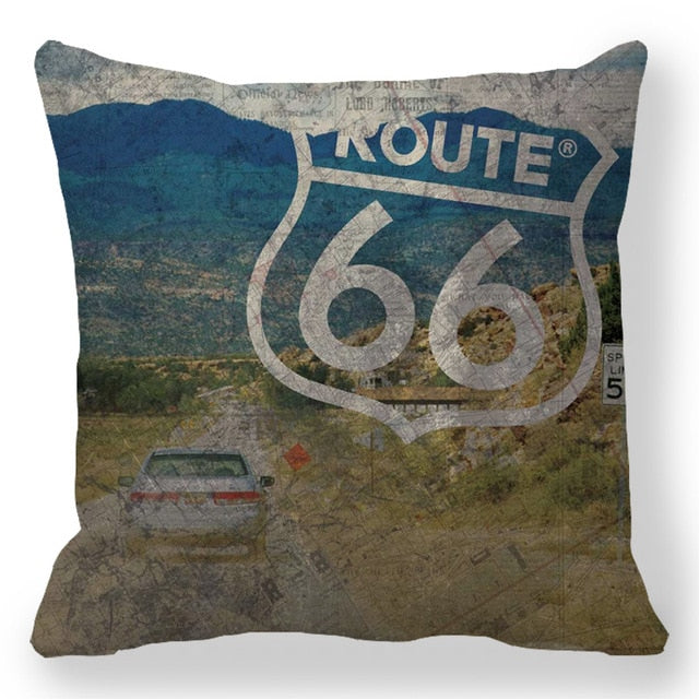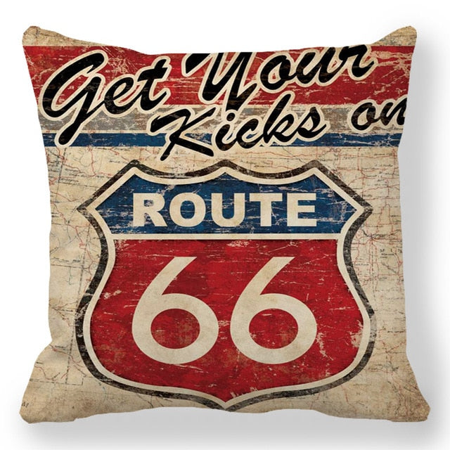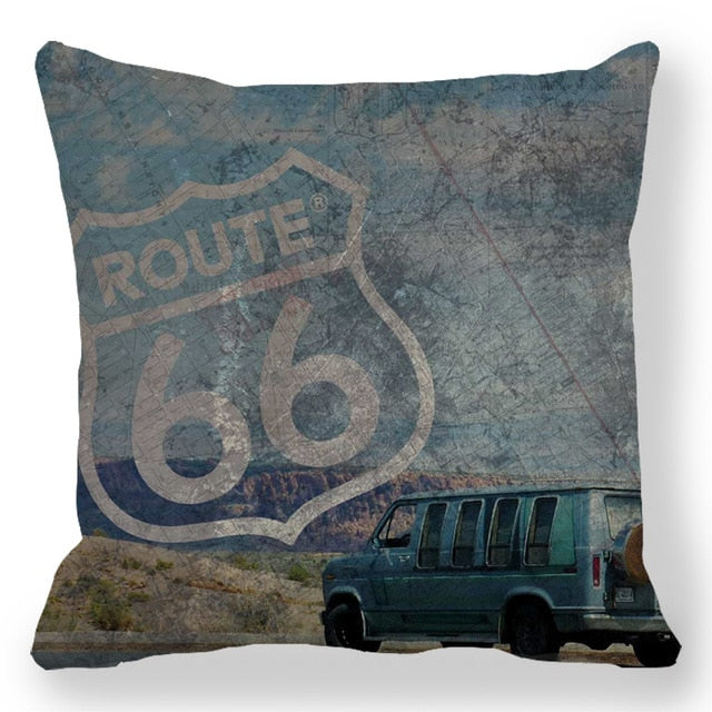 18″ Retro Route 66 RV Road Trip Throw Pillow Cover