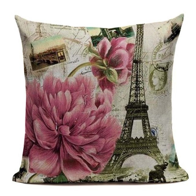 18″ Vintage Floral Paris / Eiffel Tower Throw Pillow Cover